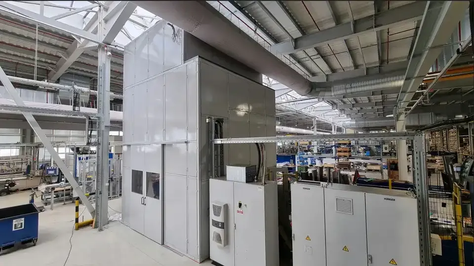 At a production facility for Hansgrohe, one machine generated noise reaching 120 dB. DECIBEL crafted a bespoke acoustic cabin to surround the unit, reducing noise to a safer 78 dB, a substantial improvement proven via independent testing.