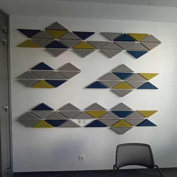 The 200 custom small triangles not only met the acoustic needs of the meeting and interview rooms but also added a unique design element. The client now enjoys daily use of these rooms with exceptional acoustic quality, demonstrating the successful integration of functionality and bespoke design.